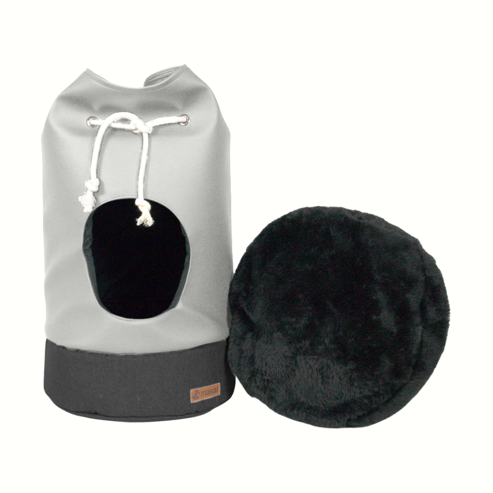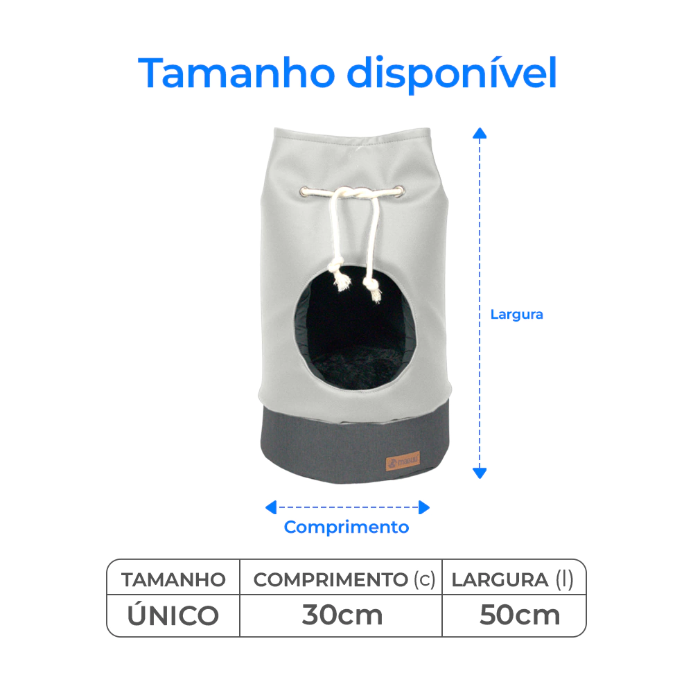 A Cat Bag Mabuu Pet é o refúgio perfeito para o seu felino, unindo conforto, diversão e segurança. Com um design aconchegante e várias aberturas, ela permite que o gato se esconda, observe o ambiente e relaxe com tranquilidade. Feita com corda de algodão, courvin e nylon de alta qualidade, é resistente e durável, garantindo momentos prolongados de descanso e diversão. Além disso, conta com uma almofada removível de pelúcia, proporcionando ainda mais aconchego. Fácil de limpar, a almofada pode ser lavada com água e sabão neutro. Dê ao seu gato um esconderijo confortável e estiloso com a Cat Bag!