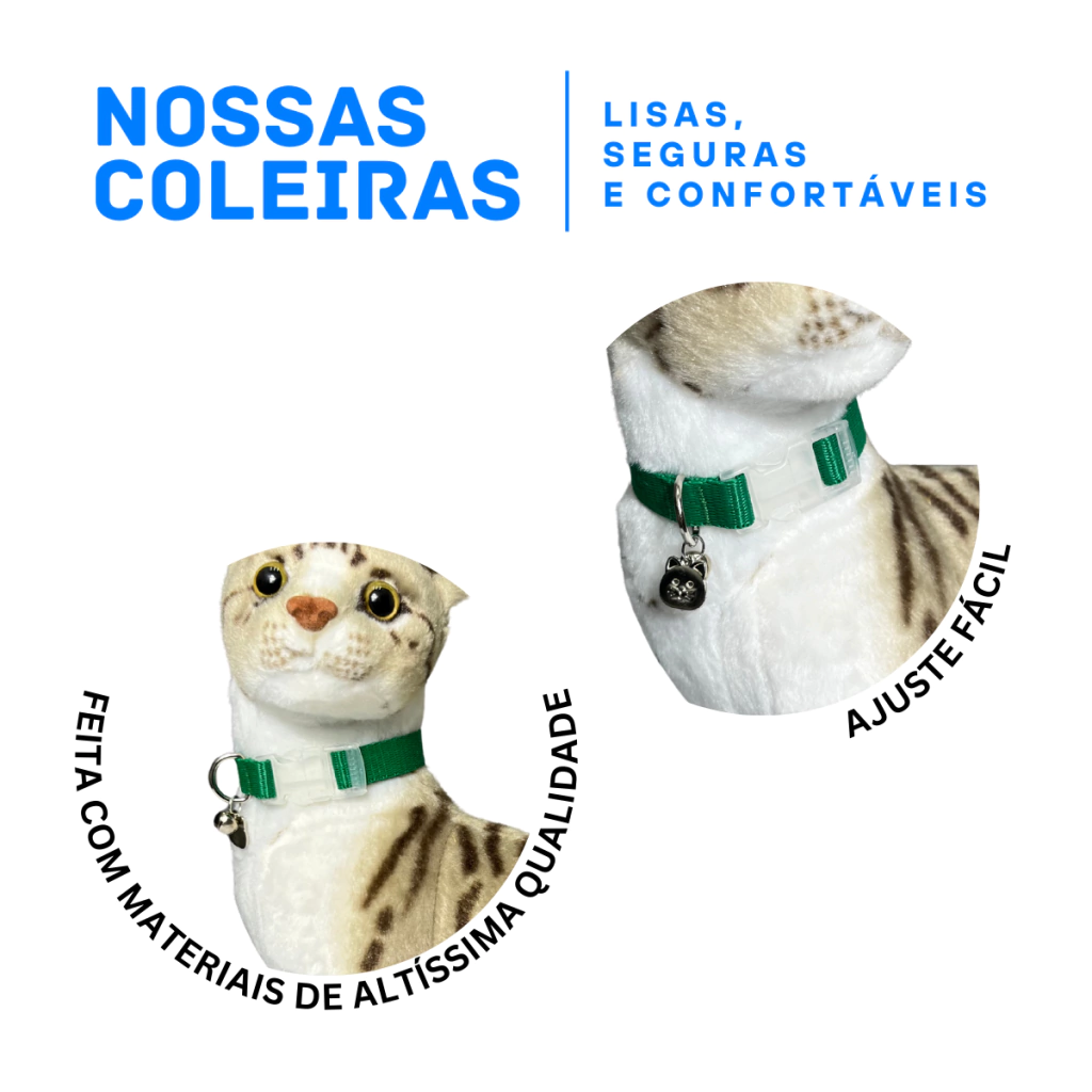 Seu design moderno vem acompanhado de um pingente exclusivo e um delicado guizo , que além de dar um charme extra, ajuda a identificar os passinhos curiosos do seu pet pela casa. Disponível em cinco cores cheias de estilo e em tamanho único ajustável , é a escolha ideal para quem deseja praticidade sem abrir mão da elegância.