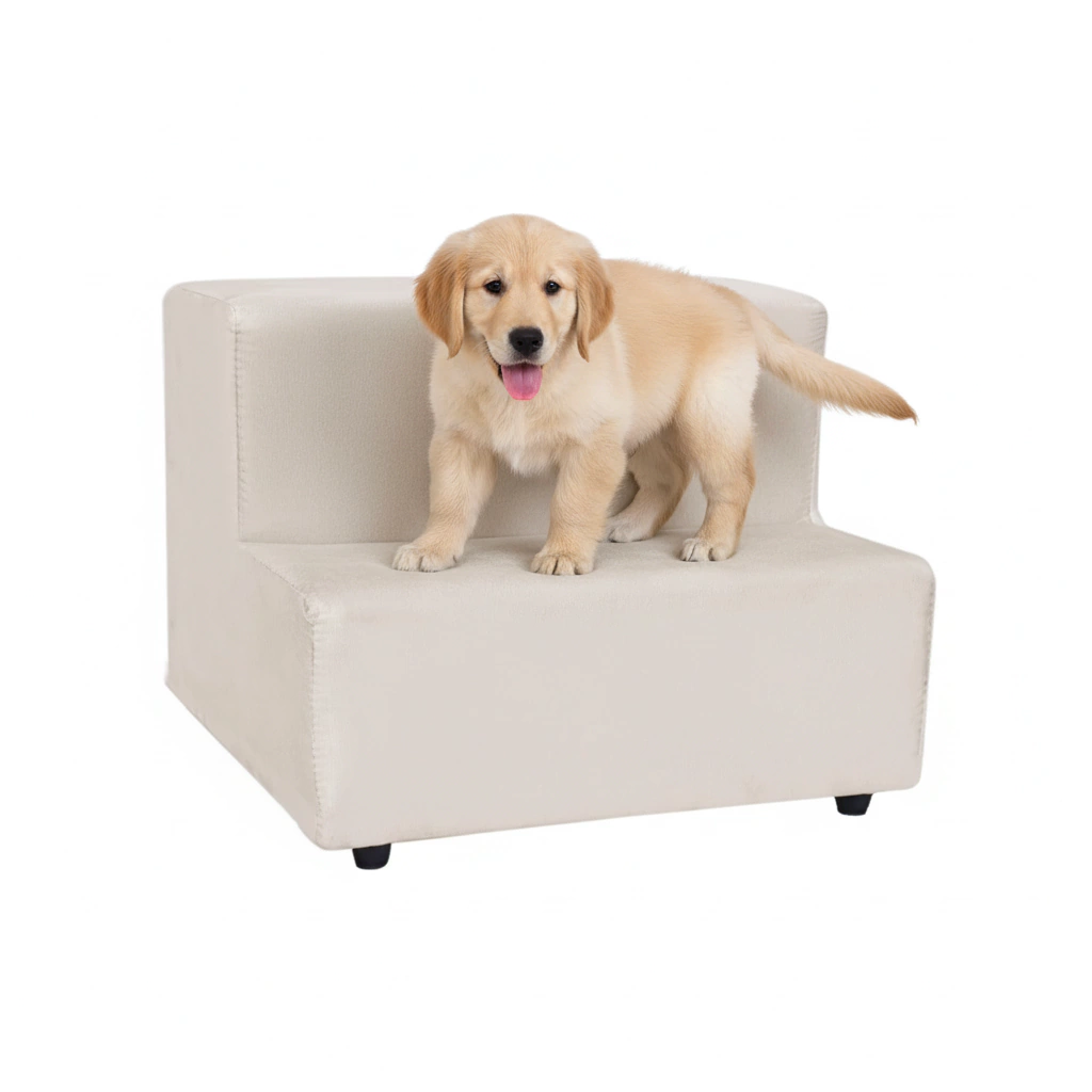 Fabricada com estrutura resistente de Madeira de Eucalipto , espuma de alta densidade e revestimento macio, a escadinha suporta até 30 kg e possui degraus amplos, estáveis e confortáveis para cães de todos os portes menores.